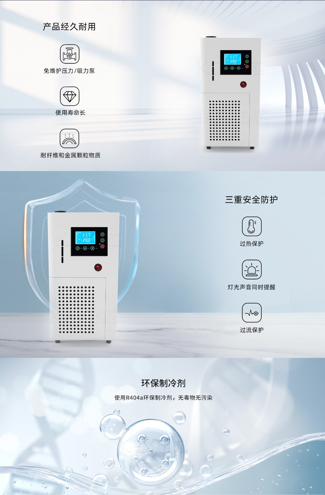 c)可用于旋轉(zhuǎn)蒸發(fā)儀、真空冷凍干燥箱等降溫冷卻;